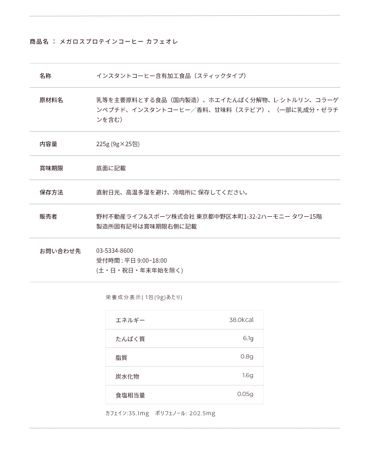 Qプロテインコーヒーのカフェインはどれ位ですか?