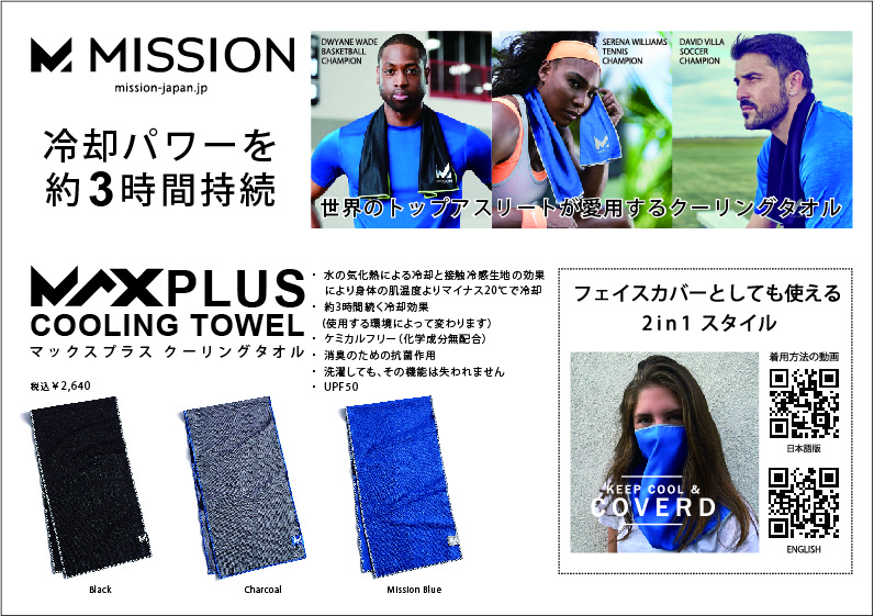 「MISSION」体を素早く冷やし、パフォーマンスの向上を促進。熱中症対策に最適です。世界のトップアスリートが愛用する全米売上No.1ブランド。