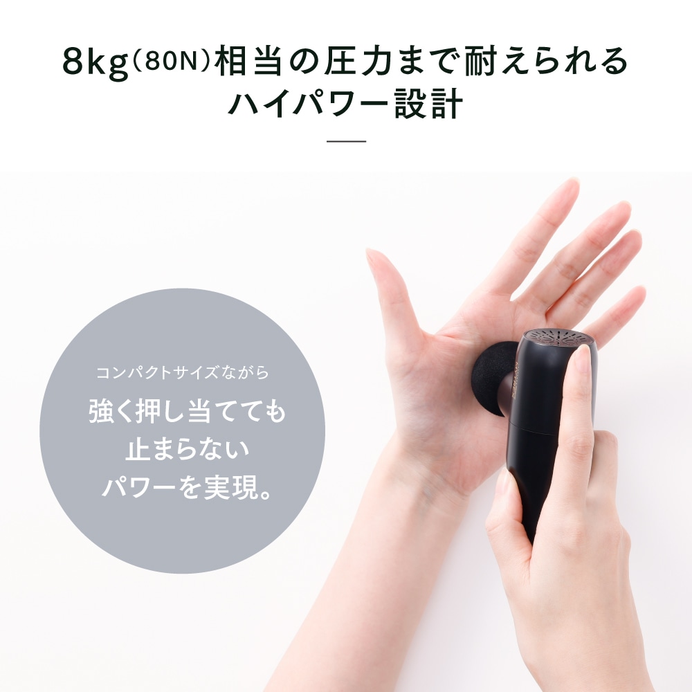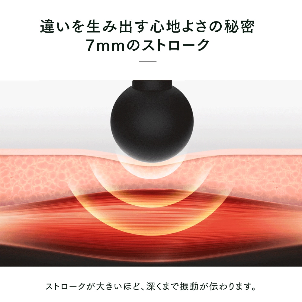 片手で使える約265gのコンパクトさと、毎分最大3,000回の振動と振幅7mmが生み出すパワフル振動。5段階の振動レベルで気になる箇所をピンポイントで奥深くまでアプローチ。