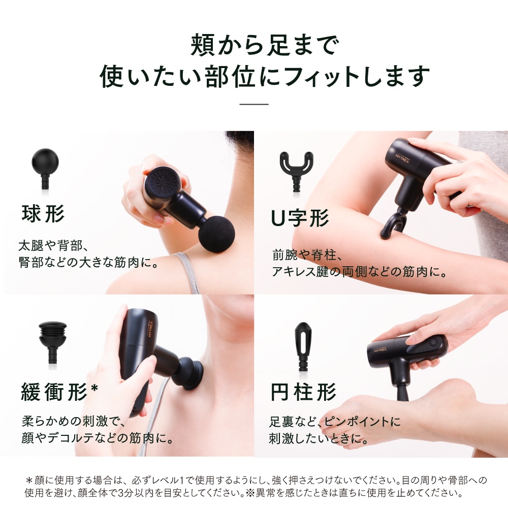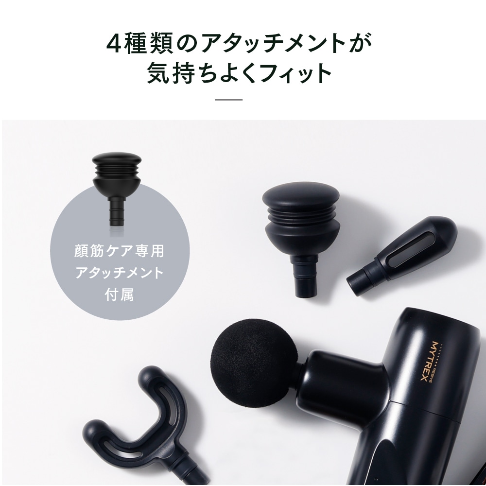 MYTREXは顔全体の印象の決め手となる「顔 筋」に着目。顔に優しいアタッチメントも標準付属しました。
