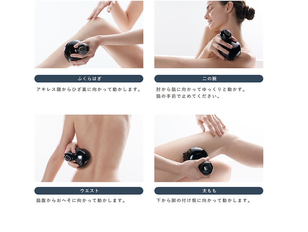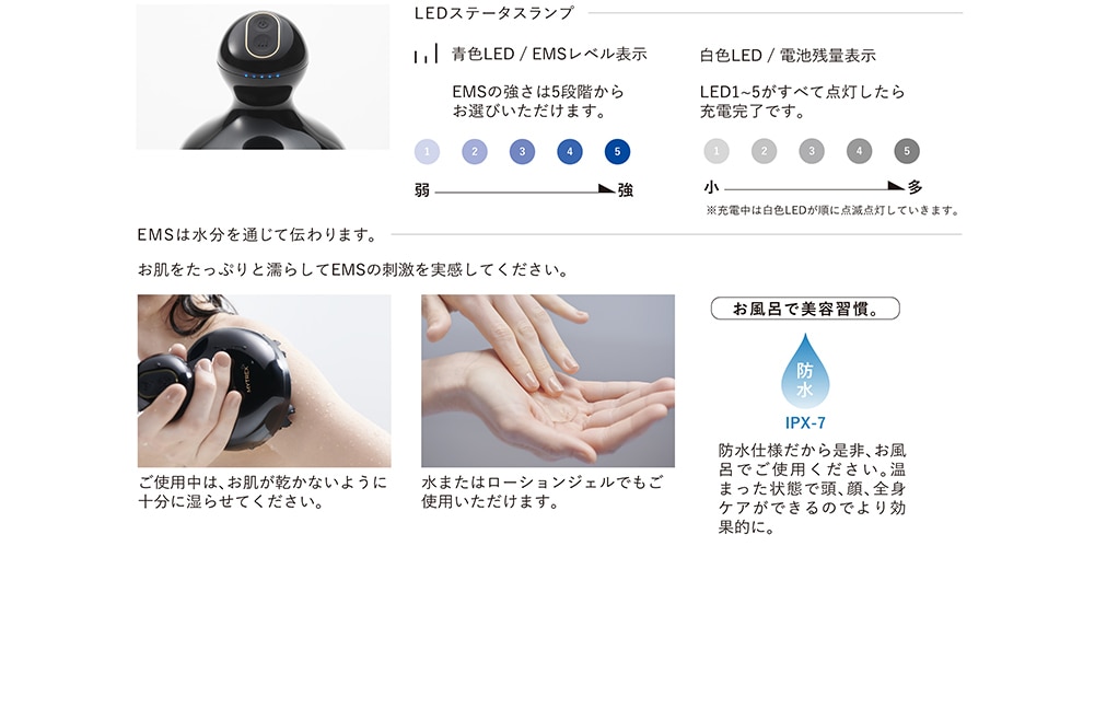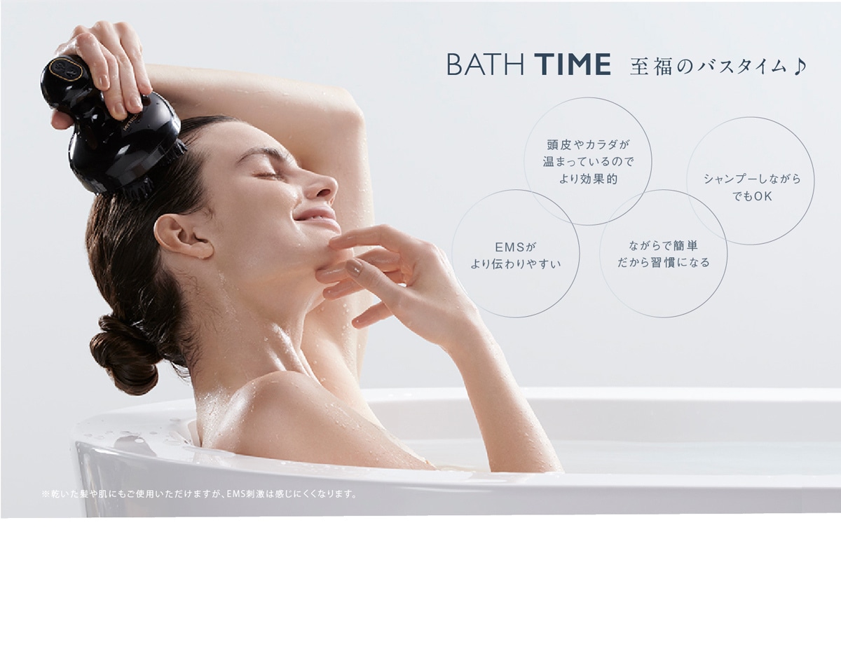 バスタイムに軽く当てて動かすだけで頭皮や顔の筋肉にアプローチし、さらにボディにも対応。